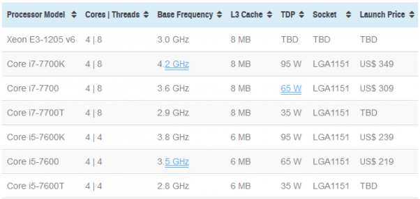 Intel Kaby Lake Series specification and prices have been leaked online. You will find it interesting to know as soon as AMD Ryzen was announced and unveiled the entire KabyLake series was leaked online. You can see the in the leaked picture below the specification and prices of i5 and i7 chips that falls in the category of mid to high end. All we just need to know about the i5 and i7 models, the only thing is left to see is KabyLake’s entry model processors.