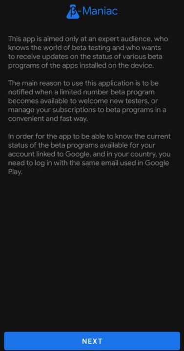 Developed by Mark Dimartino, Beta maniac is an app that helps you manage the beta programs of your apps. It even allows you to participate in a limited number beta programs. The app regularly scans for the beta programs of the apps that are already installed into the device. When a beta program is available, the app sends a notification indicating the availability of the beta program. A simple click subscribes to the programs.