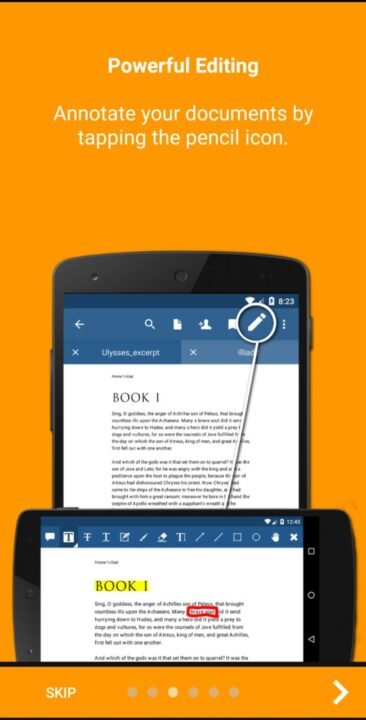 Xodo is a PDF reader cum editor app. It helps you to only read pdf files but also do a variety of editing in them. You can highlight or underline a text and even you can directly write on a pdf. Other format files such as MS Word, PowerPoint and Excel files can be opened and saved as pdf through Xodo. Filling up pdf forms on mobile devices is no longer a hectic task. You can even sign into your pdf documents and save them for further entries. Annotation of pdf files is also supported by Xodo. After editing of all the files, it can be stored over the cloud services such as Dropbox, Google Drive and OneDrive.