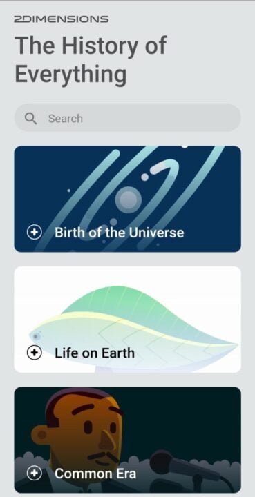 A very intuitive app for learning about the past. Developed by 2D, Inc this is a vertical timeline application that tells you about “the history of everything” in chronological order. Beautifully illustrated with 2D vector graphics like diagrams and minimalistic animations, the app doesn’t let your attention wander away.